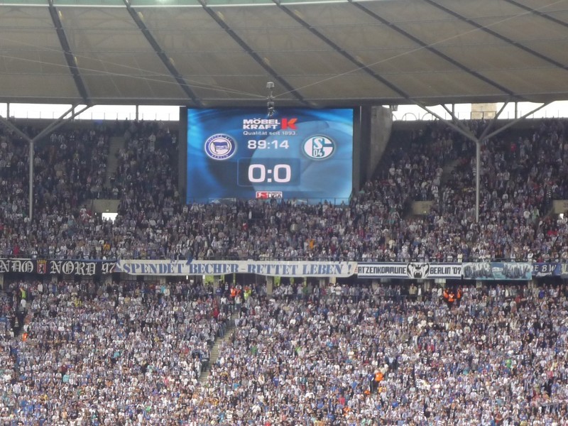 Am vorletzten Spieltag machten wir uns mit einem Bus in die Landeshauptstadt. Für Schalke war das Spiel bedeutungslos. Die Berliner konnten mit einem Sieg sogar noch weiter von der Meisterschaft träumen. Das Spiel endete torlos. Die 2-Tagesfahrt mit einem Abstecher ins Klo hat jedoch eine Menge Spaß gemacht